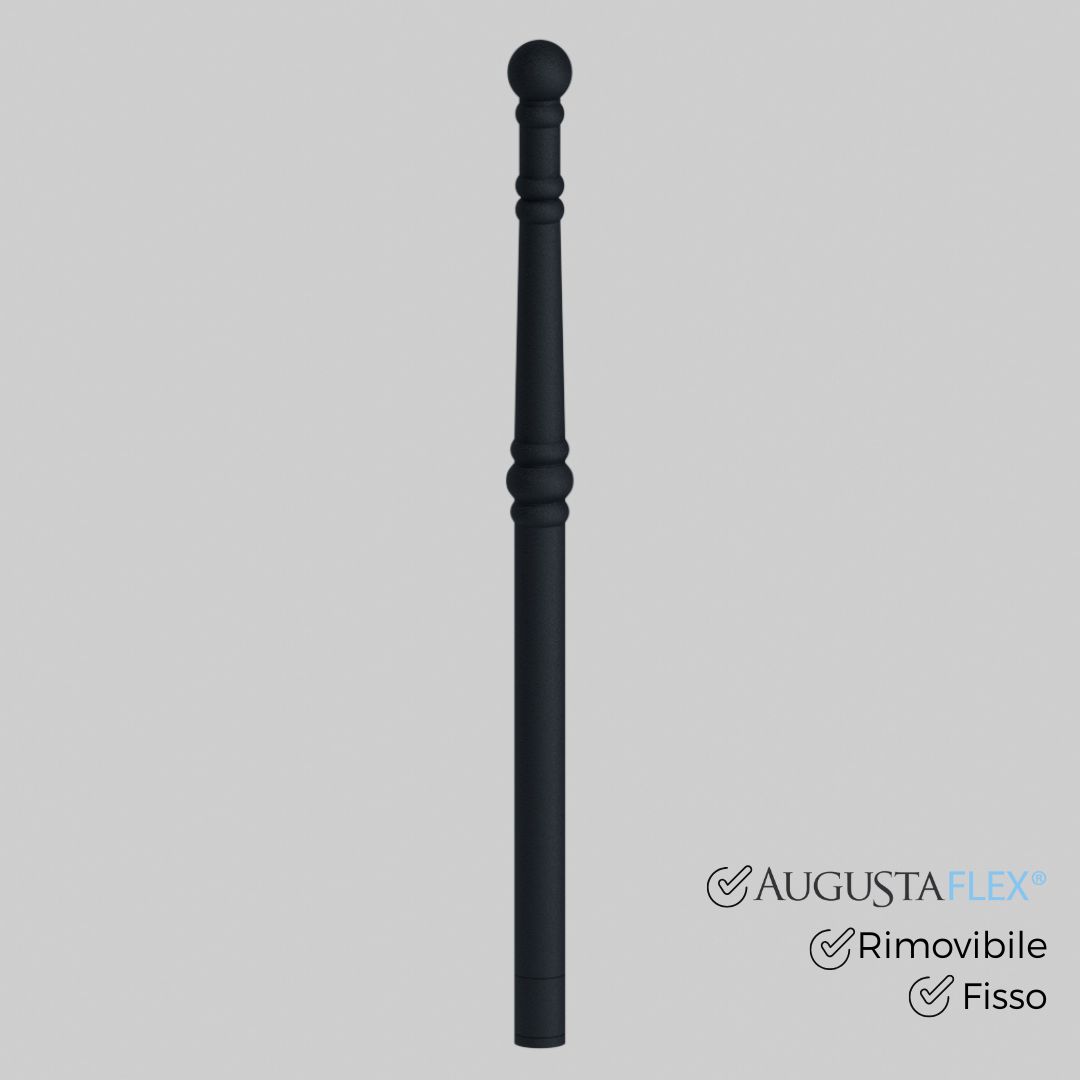 The Champs Élysées bollard features a classic and elegant design, ideal for defining historic centres, pedestrian areas and prestigious architectural settings. It is made of galvanized steel and powder coated in anthracite. The shape combines a cylindrical base with a series of decorative rings, conical elements and a spherical top, all turned and welded to ensure aesthetic continuity and structural strength.