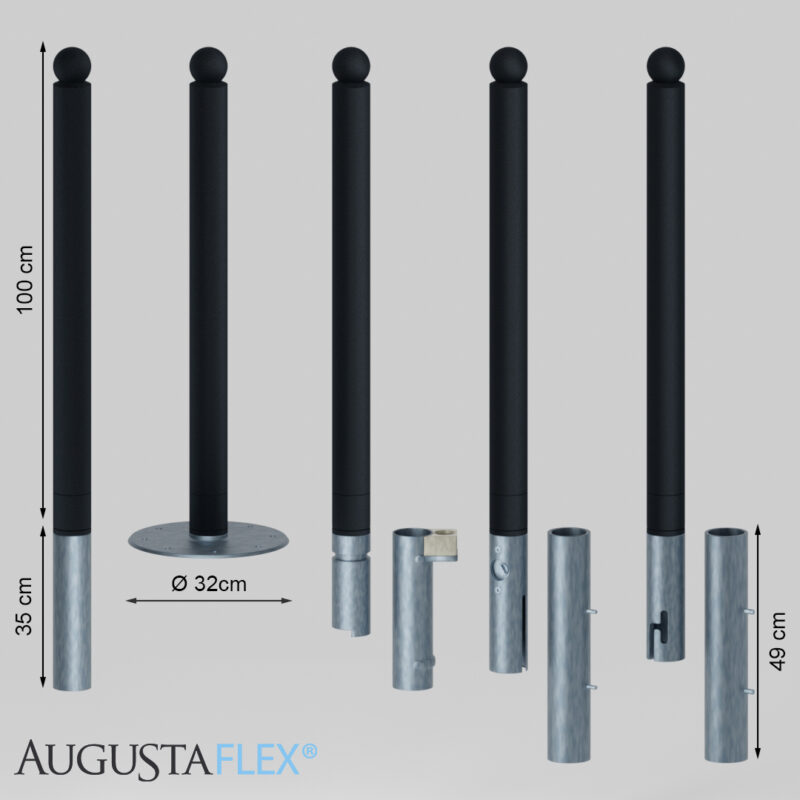 Poller Augustaflex mit Bodenhülse: 11 kg (d60), 17 kg (d76)
